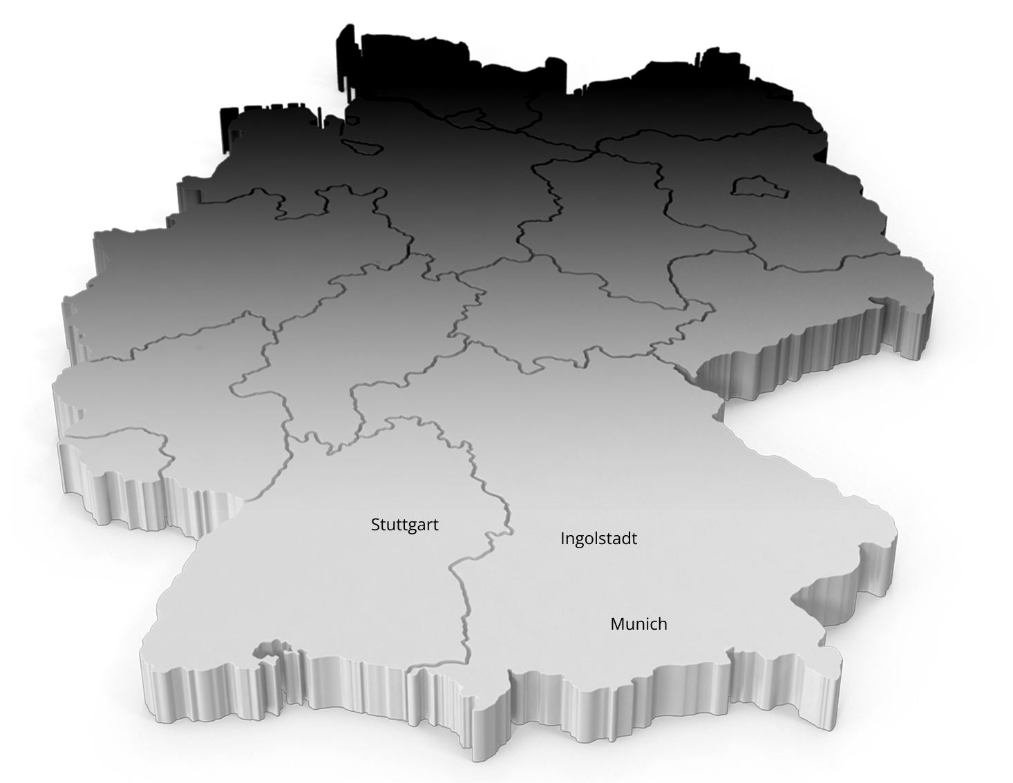 Click your way through our locations: Stuttgart-Fellbach, Stuttgart-Böblingen, Weissach, Munich, Ottobrunn & Ingolstadt.
